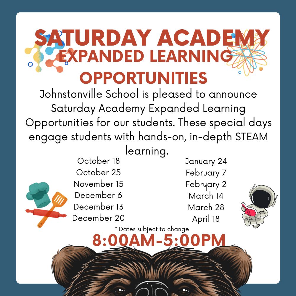 As we prepare to begin a new school year, I am excited to welcome you to Johnstonville School. Whether you are returning or joining our community for the first time, we look forward to partnering with you in a year filled with growth, learning, and new opportunities.