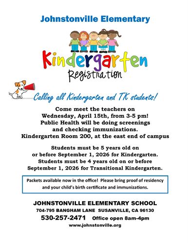 4/15 Kindergarten Roundup 3-5 pm